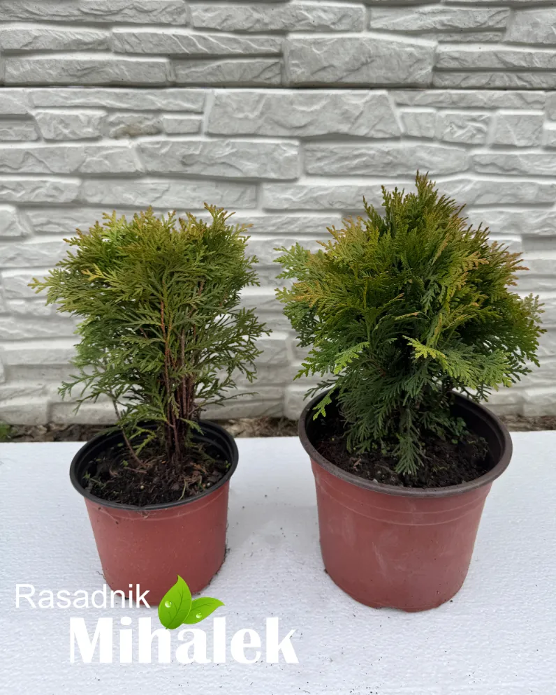 Thuja occidentalis Danica je patuljasti četinar male kuglasta forme prečnika do 60 cm. Lepo se kombinuje sa niskim ružama i perenama. Ovaj četinar je idealan za sadnju u kamenjaru i malim vrtovima. Ako se odlučite da uz stazu sadite samo ovu vrstu, napravite rastojanje između sadnica 60-70 cm. Ukoliko želite još nešto dodati između sadnica izaberite niske crvene berberise koji će se odlično uklopiti u kompoziciju sa ovom patuljastom tujom. Tuja “Danica” raste u obliku kugle, veoma je gusta, što joj daje jedan veoma elegantan izgled. Otporna je na mraz i zahteva veoma malo održavanja. Ona voli sunčana mesta, ali može da podnese i blagu senku. Više o tuji “Danici” pročitajte u našem blogu thuja danica – loptica sa karakterom. Razliku između veće i manje sadnice možete videti na fotografiji broj 4 (12.03.2026).