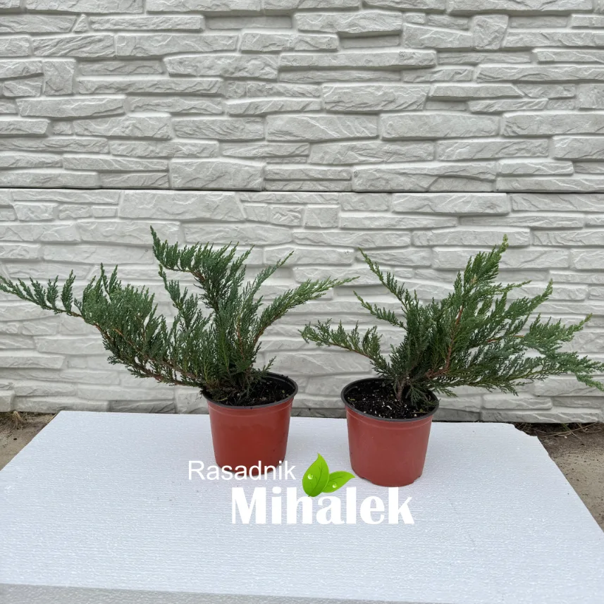 Juniperus sabina tamariscifolia je polegla, zimzelena kleka koja formira gust, širok žbun sa granama koje se šire uz tlo i prate reljef terena. Odlikuje se finim, ljuspastim listovima srebrnozelene boje, koji tokom cele godine zadržavaju svež izgled. Raste sporo, ali vremenom dostiže oko 70–80 cm visine i 1,5–2 metra širine, stvarajući dekorativne jastučaste oblike. Najbolje uspeva na osunčanim mestima i u dobro dreniranom zemljištu. Nije zahtevna po pitanju kvaliteta zemlje, ali ne podnosi dugotrajnu vlagu. Izuzetno je otporna na sušu, vetar i gradske uslove, pa je odličan izbor za kamenjare, padine ili kao pokrivač tla. Zbog svoje postojane boje i guste strukture, lepo se kombinuje sa nižim perenama, ukrasnim travama i drugim četinarima. Dobro podnosi orezivanje i minimalno održavanje, što je čini idealnom za one koji žele uredan i prirodan izgled bašte tokom cele godine. Izgled sadnice za prodaju možete videti na fotografiji broj 4 (09.10.2025).