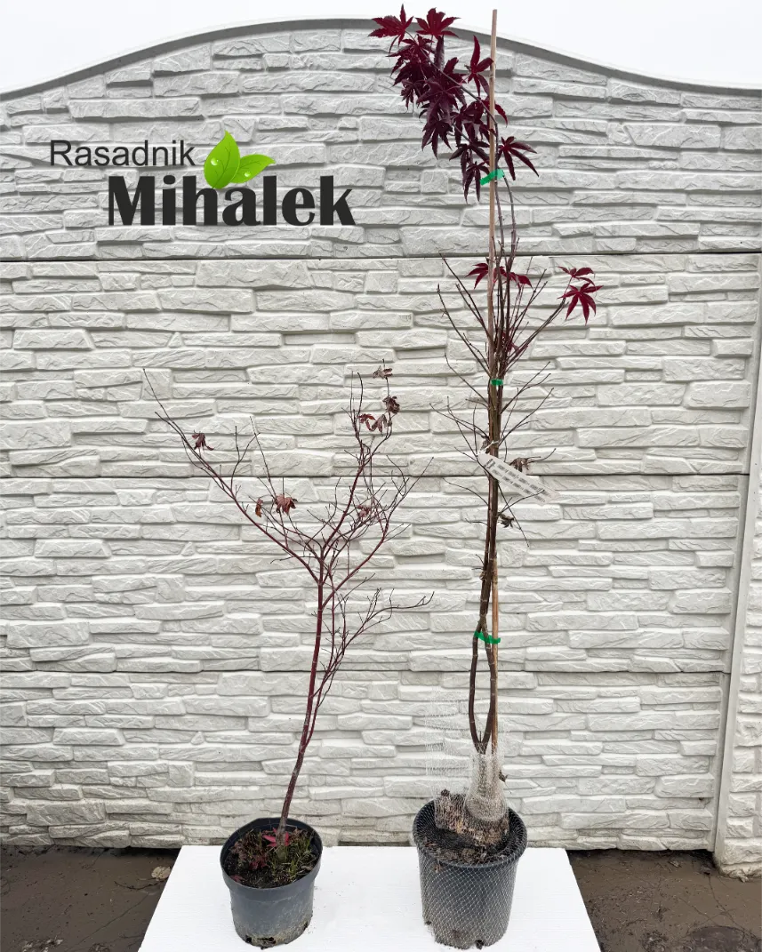 Acer palmatum bloodgood je vrsta crvenog javora koja dostiže visinu i širinu 2,5-3 m. Najlepši je u proleće i jesen kada mu je boja intenzivno crvena. Boja lista će biti najbolja ako biljku sadite u blagoj senci. Tolerantan je i na sunce. Vodite računa o zalivanju biljke (nemojte preterivati, a nemojte ni zaboraviti da ga zalijete). Ako dođe do opadanja listova, najčešće je uzrok previše ili premalo zalivanja. Odgovara mu blago kiselo i dobro drenirano tlo. Više o japanskim javorima pročitajte u našem blogu japanski javor – idealan ukras malih vrtova. Razliku između veće i manje sadnice možete videti na fotografiji broj 4 (12.12.2025).