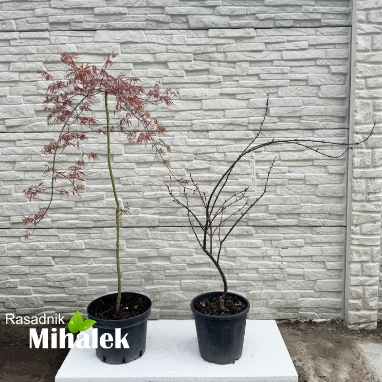 Acer palmatum dissectum garnet je kalemljeno drvo koje se može formirati i kao žbun i kao drvo što zavisi od visine kalemljenja. Raste do 1,5 m, a može ići u širinu i do 2 m. Raste veoma sporo. List tokom godine menja boju, od tamno narandžaste, preko crvene, pa u jesen intenzivno narandžaste. Preko leta dobija i zelene nijanse. Grane su savijene prema dole. Idealan je za sadnju pored vodenih površina, u malim baštama, ukrasnim posudama… Sadite ga u polusenovitom delu vrta. Više o japanskim javorima pročitajte u našem blogu japanski javor – idealan ukras malih vrtova. Razliku između sadnica možete videti na fotografiji broj 4 (19.03.2026).