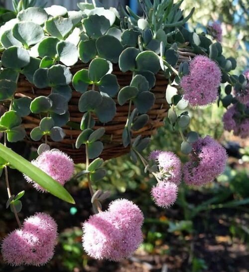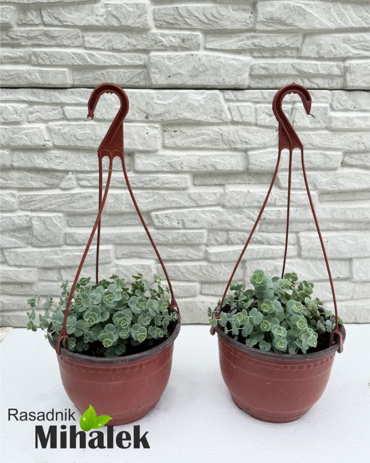 Sedum sieboldii october daphne je niska, listopadna višegodišnja biljka koja se ističe tokom više sezona svojom dekorativnošću. Formira zaobljen, kompaktan žbun sa horizontalnim granama koje nose pršljenove sitnih, okruglih listova prečnika do 2,5 cm i dostiže visinu 15-25 cm i širinu 30-45 cm. Listovi su u proleće plavičasto-zeleni sa srebrnim tonom, a tokom leta dobijaju ružičaste ivice koje postaju intenzivnije na vrućini. U jesen menjaju boju u jarko narandžasto-crvenu, što stvara lep kontrast sa grozdovima sitnih, zvezdastih, ružičastih cvetova na vrhovima stabljika. U punom cvetu privlači leptire i druge oprašivače. Cenjen je zbog dekorativnog lišća, otpornosti na sušu i upečatljivog jesenjeg izgleda. Veoma je svestrana biljka koja se može koristiti kao pokrivač tla, za ivice, u kamenjarima ili za sadnju u pukotinama zidova. Odličan je i za saksije gde je dekorativan tokom cele sezone. Najbolje uspeva na sunčanim položajima, u dobro dreniranom zemljištu slabije do umerene plodnosti, neutralne do blago alkalne reakcije. Podnosi i blagu senku i otporan je na sušu kada se dobro ukoreni. Na fotografiji broj 4 možete videti sadnice za prodaju (11.04.2026).