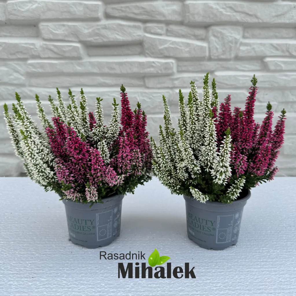 Calluna beauty ladies twins je jedna od najlepših jesenjih biljaka. Spada u zimzelene niske grmovei može da dostigne visinu od oko 30 cm. Cvetovi su u crvenoj i beloj boji. Biljka se vremenom širi. Pogodna je i za sadnju u saksijama i žardinjerama. Traži sunčane pozicije i kiselo zemljište. Biće lep ukras u svakom vrtu i tokom zime, jer cveta i u zimskom periodu. Ukoliko je temperatura niža od -5C potrebno je biljku zaštiti. Ovo možete postići tako što ćete je prekriti agrilom, slamom ili suvim lišćem ili uneti u zatvoren prostor dok temperature ne budu iznad nule. Na fotografiji možete videti kako izgleda sadnica za prodaju.