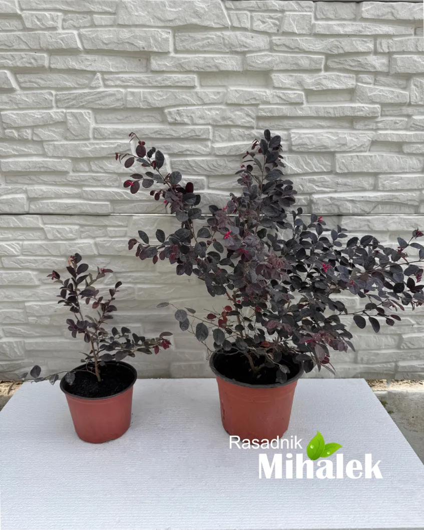 Loropetalum chinense fire dance, poznat i kao kineske rese je poluzimzeleni grm koji dostiže visinu i širinu do jednog metra. Ukras ove biljke su tamno ljubičasti listovi koji su odličan kontrast u vrtu zelenolisnim biljkama. Intenzitet boje listova se menja tokom godine. Cvetovi su blagog mirisa, ružičaste boje i uskih latica, javljaju se tokom proleća. Odgovara joj plodno, vlažno i dobro drenirano tlo. Sadite je na suncu ili u polusenci. Od ove biljke možete formirati niže žive ograde, možete je saditi pojedinačno ili u grupi sa drugim nižim grmovima. Takođe, loropetalum će biti lep i ako ga sadite u žardinjerama. Ukoliko budu veoma niske temperature tokom zime morate zaštititi biljku. Orežite biljku nakon cvetanja, ali ne previše. Na ovaj način podstićete rast novih grana. Razliku između veće i manje sadnice možete videti na fotografiji broj 3 (01.10.2025).