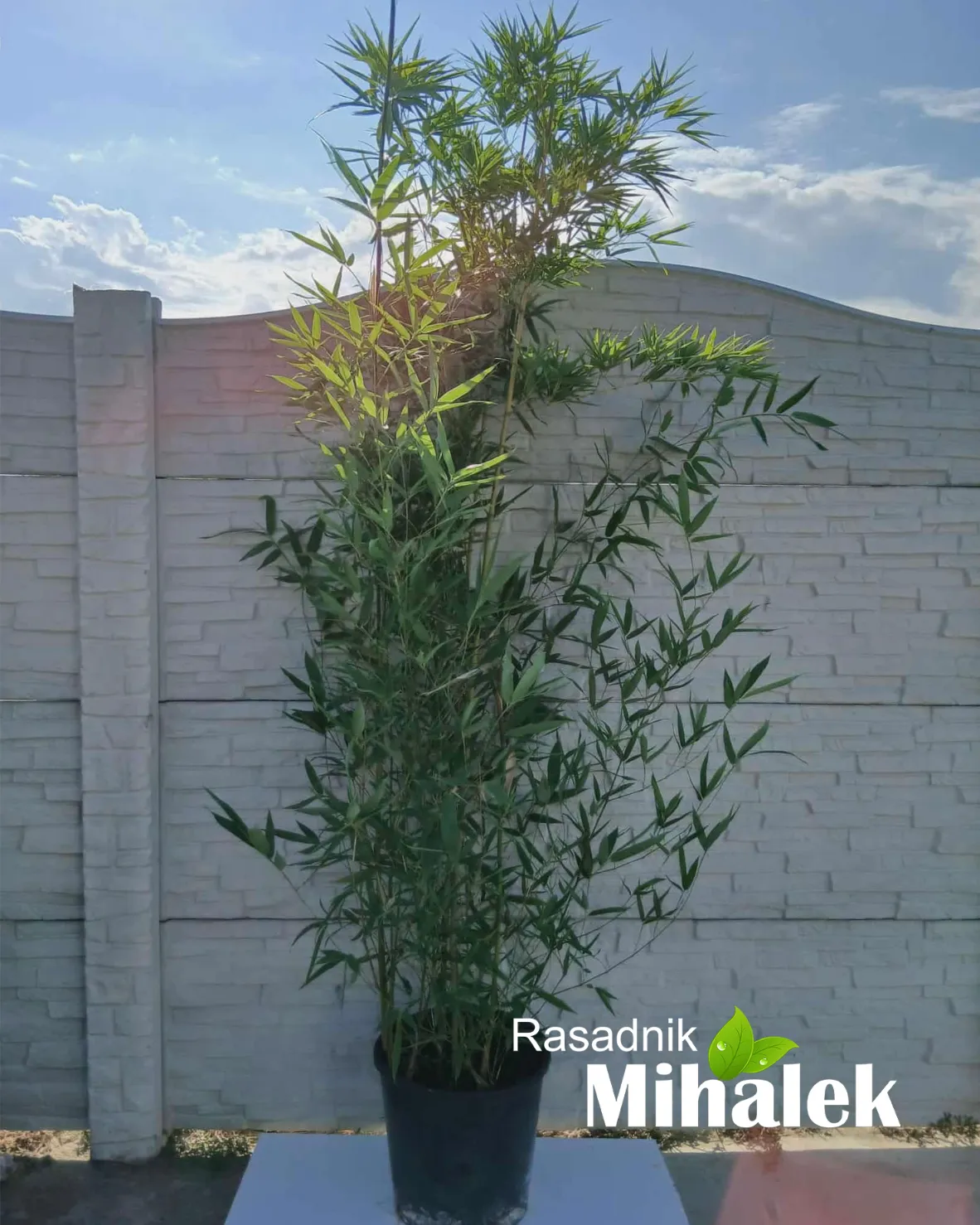 Phyllostachys – bambus je atraktivna i dekorativna vrsta bambusa poznata po svojim vitkim, uspravnim i čvrstim stabljikama koje u bašti unose egzotičan i elegantan izgled. Ovaj bambus je zimzelena biljka, što znači da zadržava svoje gusto zeleno lišće tokom cele godine, pružajući privatnost i zaštitu od pogleda. Raste brzo i formira guste žbunove ili živu ogradu, a visina mu može varirati u zavisnosti od vrste i uslova. Najčešće dostiže od 3 do 6 metara, dok u idealnim uslovima može narasti i više. Najbolje uspeva na plodnim, dobro dreniranim zemljištima, ali podnosi i različite tipove podloga ako nisu previše zbijene ili stalno preplavljene vodom. Voli sunčane ili polusenovite položaje, a dovoljno svetlosti obezbeđuje mu brži i gušći rast. Veoma je otporan na hladnoću i može se uspešno gajiti na otvorenom u našem podneblju. Phyllostachys – bambus je idealan za sadnju kao prirodna ograda, vetrozaštitni pojas ili ukrasna biljka u vrtu. Zahvaljujući brzom širenju, za kratko vreme stvara efektnu zelenu barijeru. Iako je robustan i dugotrajan, preporučuje se kontrolisati njegovo širenje postavljanjem rizomskih barijera, jer se može raširiti po bašti. U suštini, ovo je biljka koja kombinuje egzotiku, praktičnost i otpornost. Odličan je izbor za sve koji žele da svom prostoru dodaju upečatljiv zeleni akcenat tokom cele godine. U ponudi su sadnice visine 200-230 cm, čiji izgled možete videti na fotografiji broj 2 (01.10.2025).