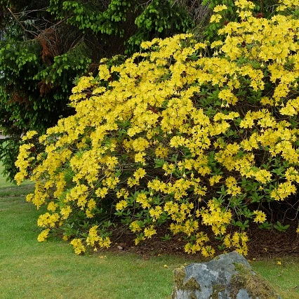 Azalea mollis luteum je listopadni, dekorativni grm zaobljenog i blago razgranatog habitusa. Dostiže visinu od 120–180 cm i širinu oko 120 cm, a raste sporije, sa godišnjim prirastom do 30 cm. U kasno proleće i početkom leta obilno cveta. Cvetovi su krupni, veoma upadljivi i javljaju se u toplim nijansama žute boje. U odnosu na druge azaleje, cvetovi su veći i dugotrajniji, pa biljka daje snažan dekorativni efekat u vrtu. Listovi su sveže zeleni tokom vegetacije, a u jesen prelaze u atraktivne, višebojne tonove, što dodatno povećava njenu ukrasnu vrednost. Ova azaleja je otpornija na hladnoću i može podneti temperature do oko -23°C, a ujedno dobro podnosi i toplije uslove. Najbolje uspeva na sunčanim do polusenovitim mestima. Najviše joj prija blaga senka, filtrirano svetlo ili jutarnje sunce. Na jakom popodnevnom suncu može doći do bleđenja listova i kraćeg perioda cvetanja. Zahteva kiselo, humusno, vlažno ali dobro drenirano zemljište. Preporučuje se plitka sadnja na mestu zaštićenom od jakih zimskih vetrova. Malčiranje organskim materijalom pomaže u očuvanju vlage, regulaciji temperature zemljišta i smanjenju korova. Pogodna je za sadnju u grupama, mešovitim bordurama, kao cvetajuća živa ograda ili u manjim vrtovima. Privlači leptire, ptice i druge oprašivače, a uklanjanje precvetalih cvetova podstiče novi rast i lepši izgled biljke.